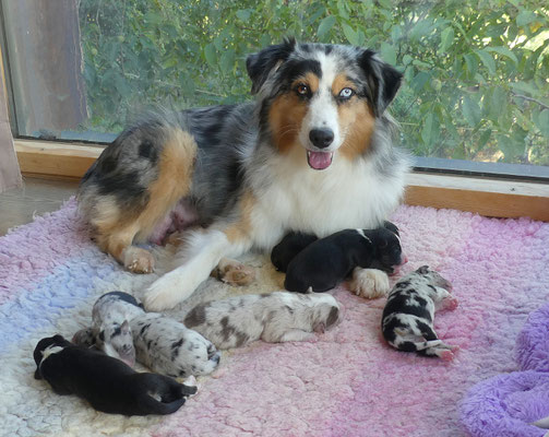 Nous sommes heureux de vous annoncer que notre chère Jojo à mis au monde les 7 chiots du superbe étalon